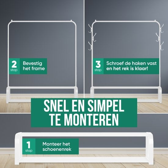 Dispose d’une barre pour suspendre vos vêtements, de 2 étagères inférieures pouvant accueillir jusqu’à 12 paires de chaussures, et de 6 crochets latéraux parfaits pour chapeaux, sacs, ceintures ou écharpes. -