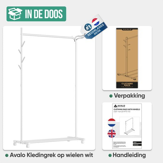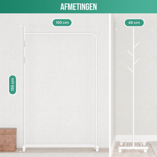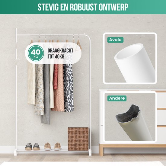 Avec une grande taille de 100x40x156 cm, une capacité de charge robuste de 40 kg et des châssis avec freins pratiques, ce porte-vêtements industriel d'Avalo est un complément parfait pour tout intérieur. Le cadre robuste en métal offre stabilité et longévité, tandis que le porte-chaussures intégré ajoute un espace de rangement supplémentaire. Ce porte-vêtements offre non seulement une fonctionnalité, mais constitue également une solution élégante pour organiser les vêtements et les accessoires.