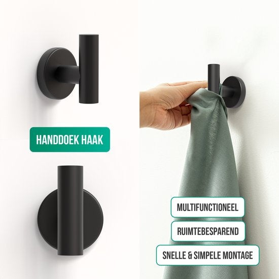 Avalo Toilet Accessories Set Black 4-Piece - Luxury Toilet Set - Brosse de toilette avec support / Porte-rouleau de toilette / Porte-rouleau de rechange / Crochet pour serviettes - Matériel de fixation inclus