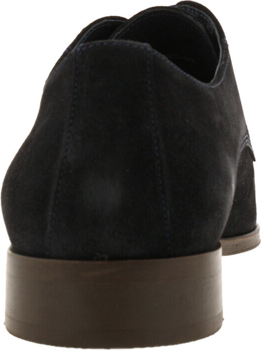 Chaussure basse pour homme en daim bleu foncé, fabriquée à la main, avec 4 trous de laçage de chaque côté et une fermeture derby. Entièrement doublée de cuir et dotée d'une assise plantaire amovible. Cette chaussure pour homme en daim est fabriquée à partir de daim de haute qualité et est disponible en bleu foncé.