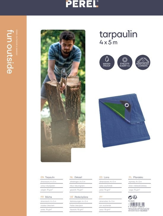 Cette bâche Perel est pratique pour garder les choses au sec. La bâche peut également être utilisée pour déposer de la terre ou du sable sans que la surface ne se salisse.