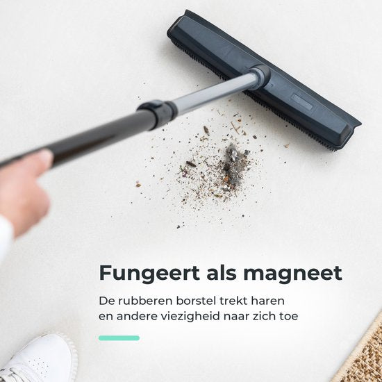 Les poils en caoutchouc agissent comme un puissant aimant, attirant sans effort la poussière, les cheveux, les restes de papier et autres débris sur les sols en carrelage et en bois, les tapis et les moquettes. Et ce, sans laisser de rayures. Les poils d'animaux sont également éliminés en profondeur des tapis.