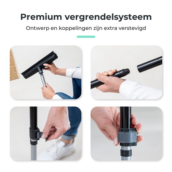 Le balai d'intérieur est réglable jusqu'à 142 cm, avec un bord de traction extra-large. Cela facilite le tirage à sec des fenêtres hautes. La brosse en caoutchouc avec manche est également parfaite pour une utilisation à l'extérieur, comme dans le jardin, sur le balcon ou la terrasse.