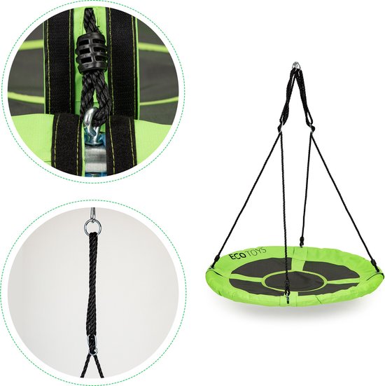 Balançoire à litière Jouet d'extérieur 100 cm vert - Balançoire pendulaire - Balançoire nid - Balançoire ronde - Nid de brebis - Charge 100 kg - Pour enfants et adultes