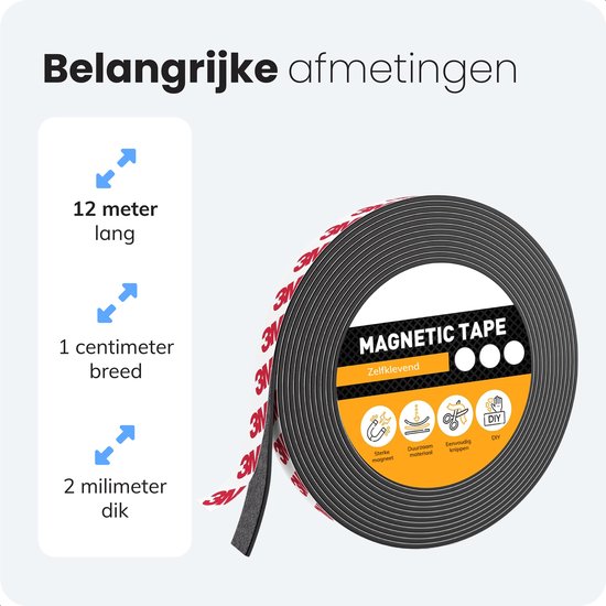 Bande magnétique autocollante - 12m - 1cm de large - Bande magnétique - Outils - Couteaux - Aimants - Bande magnétique - Magnétique - Tableau blanc - Bande noire