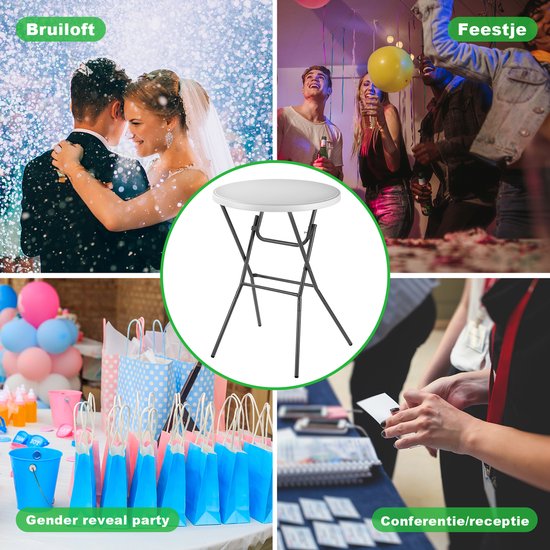 Notre table sur pied s'adapte parfaitement à vos plans, avec un diamètre de 80cm et une hauteur de 110cm. C'est la taille idéale pour que tous vos invités puissent se tenir confortablement debout et profiter de la fête.