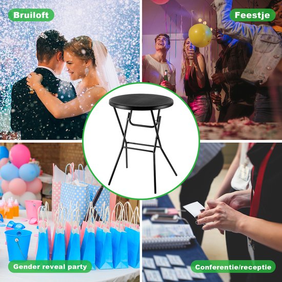 Notre table debout est de taille idéale avec un diamètre de 80cm et une hauteur de 110cm. La taille idéale pour que tous vos invités puissent se tenir debout confortablement tout en profitant de la fête.