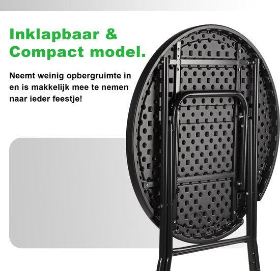 Après l'événement, le débarrassage est un jeu d'enfant. Nos tables hautes sont conçues pour un démontage rapide et facile.Assemblez-les de manière à pouvoir les ranger facilement sans aucun souci. Grâce à notre conception innovante, le cadre peut être clipsé sous la table pour gagner un maximum de place.