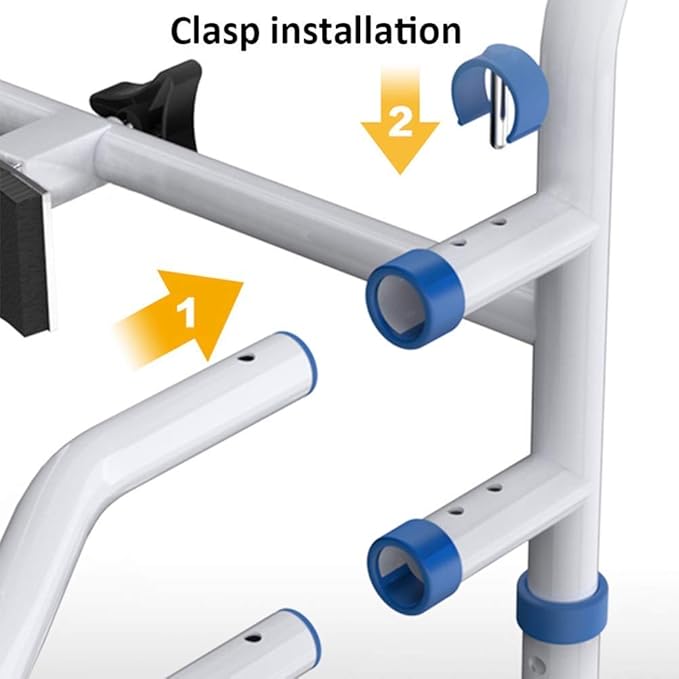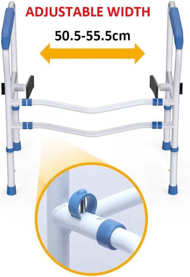 Avec 6 positions réglables en hauteur (68 à 80,5 cm) et 2 positions en largeur (50,5 à 55,5 cm), vous pouvez facilement ajuster le cadre à la taille souhaitée. Convient à la fois aux toilettes standard et allongées.