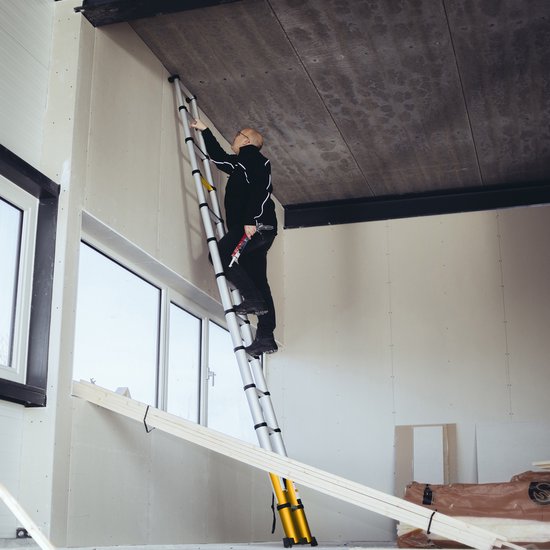 Cette échelle télescopique professionnelle est fabriquée avec des marches plus larges pour améliorer la stabilité et le confort lors de la montée. L'échelle est dotée d'un indicateur d'angle pratique, qui permet de la placer en toute sécurité sur diverses surfaces. L'échelle est extensible jusqu'à une hauteur impressionnante de 3,27 mètres, ce qui la rend idéale pour de nombreuses applications, à l'intérieur comme à l'extérieur. Que vous travailliez à la maison, dans le jardin ou dans un cadre professionnel, cette échelle télescopique est un outil essentiel pour tout bricoleur.