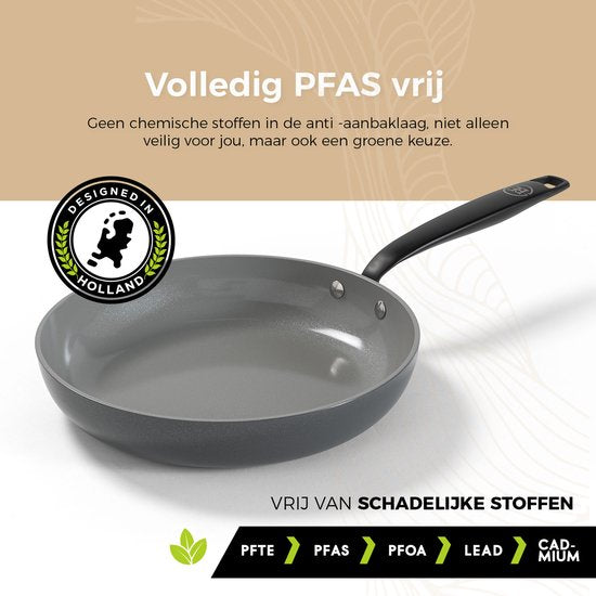 Les poêles de Be Living sont exemptes de PFAS, ce qui signifie que vous pouvez cuisiner en toute tranquillité, sans vous soucier des produits chimiques nocifs que l'on trouve parfois dans les revêtements antiadhésifs. Elles sont donc non seulement sûres pour vous, mais constituent également une option écologique.