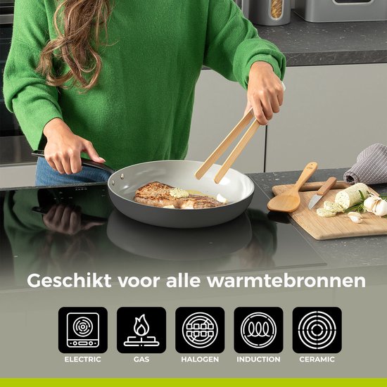 BE Living présente une poêle à frire grise de 20 cm, qui convient parfaitement à diverses sources de chaleur, y compris l'induction, et qui est entièrement exempte de PFAS. Un complément indispensable à toute cuisine contemporaine.