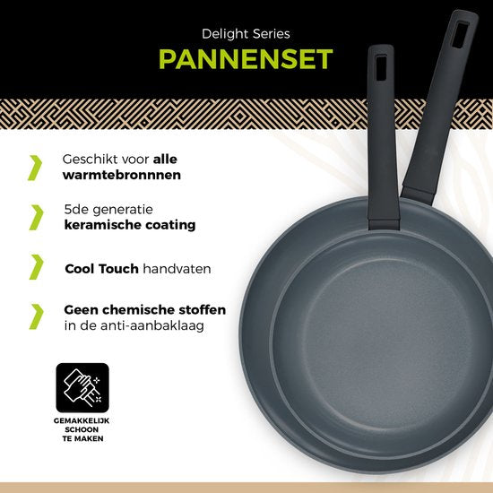 BE Living Set de poêles 2 pièces - Ø 24 & 28 cm Poêles à frire - Céramique - Poêles à induction - Antiadhésif sans PFAS - Poêles à frire - Set de poêles à frire - Série Delight