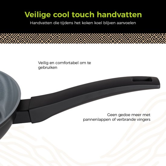 Les poêles BE Living sont dotées de poignées froides au toucher pendant la cuisson. Cela les rend non seulement plus sûres, mais aussi plus confortables à utiliser. Finies les maniques et les brûlures aux doigts : profitez d'une expérience culinaire agréable et sans souci.