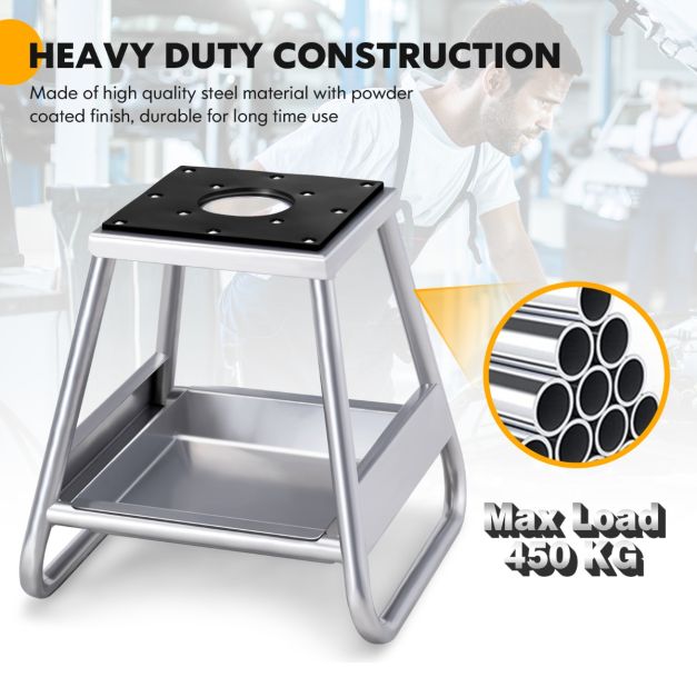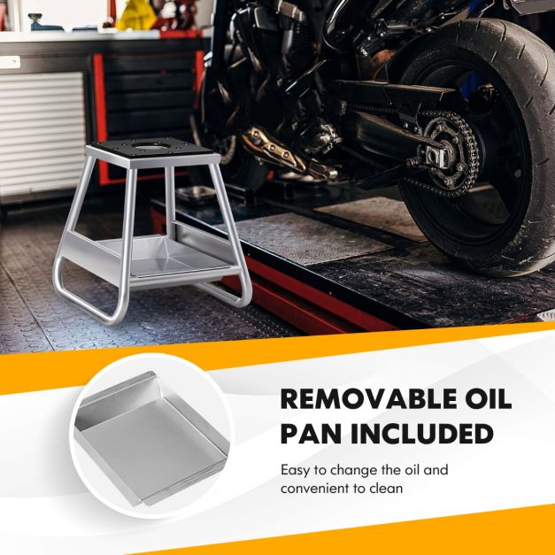 Béquille de levage pour moto Coast Cross - Surface antidérapante & bac de récupération d'huile inclus - max 450 kg - 40 x 40 x 42 cm - Silver