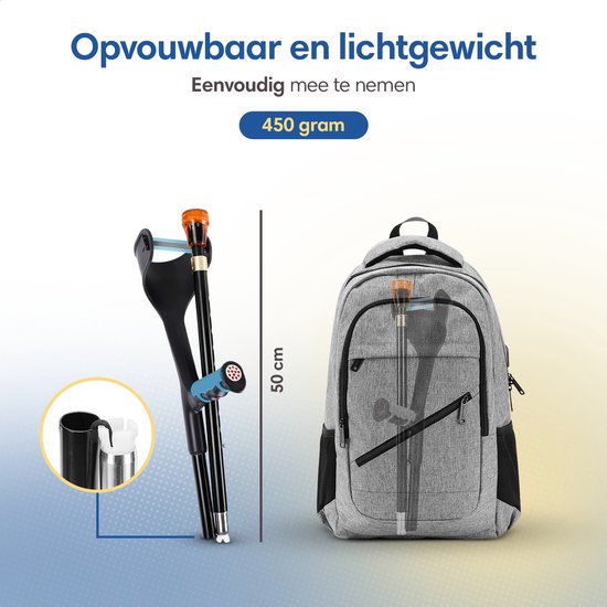 Béquilles de rééducation SafeLife - pliables et réglables en hauteur - béquilles de marche - béquilles de coude - 2 pièces