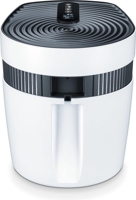 - A l'aide du ventilateur, l'air est aspiré et les filtres intégrés assurent une première purification de l'air en éliminant les particules de poussière, le pollen. la poussière domestique et les poils d'animaux
