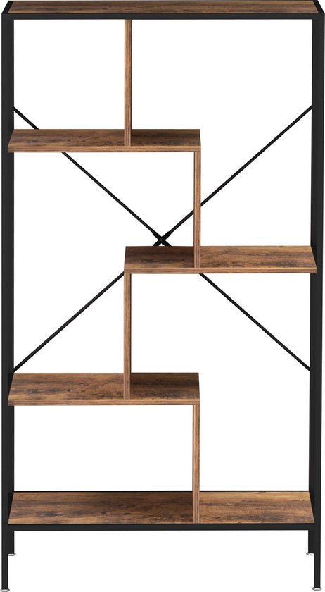 Ce meuble mural ouvert est conçu dans un style industriel contemporain, avec un cadre en métal noir et des étagères en bois marron. L'agencement ludique des étagères et des compartiments en fait un meuble polyvalent, parfait comme bibliothèque, classeur, ou comme meuble universel pour exposer vos collections ou autres objets. Donnez à votre intérieur un aspect attrayant et complet avec ce meuble industriel moderne, qui attirera tous les regards dans votre salon, votre chambre à coucher, votre bureau ou toute autre pièce de votre maison. Dimensions : largeur 80 cm, profondeur 30 cm, hauteur 147,5 cm. La livraison comprend les instructions de montage et les pièces nécessaires.