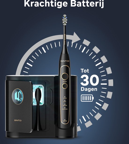 La brosse à dents sonique fournit un... La brosse à dents électrique Bintoi effectue 40 000 mouvements par minute, ce qui permet d'obtenir une solution de soins bucco-dentaires complète - des gencives plus saines et une haleine fraîche à des dents plus blanches. De plus, cette brosse à dents est 10 fois plus efficace qu'une brosse à dents manuelle standard et permet d'obtenir des résultats de nettoyage visibles en seulement 2 semaines.