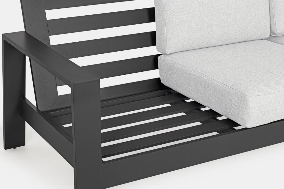 La structure robuste en aluminium est recouverte d'un revêtement en poudre durable et équipée de coussins confortables déhoussables en tissu oléfine. Ce matériau est résistant aux intempéries, inaltérable et facile à nettoyer. Les pieds réglables offrent également une stabilité supplémentaire sur n'importe quelle surface.