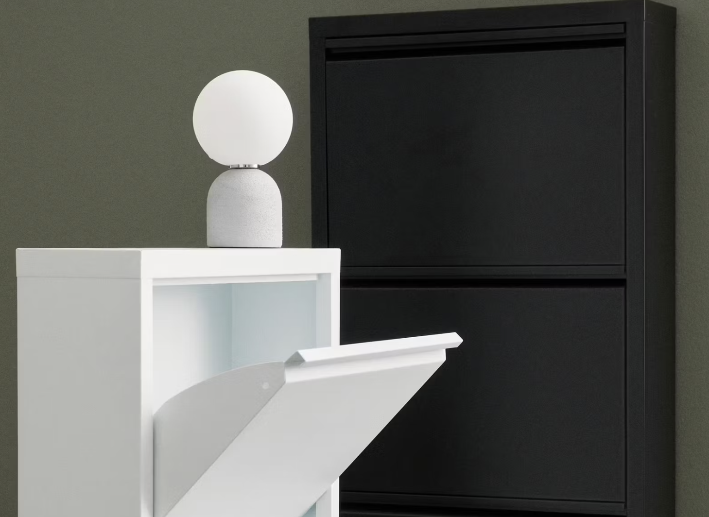 Les compartiments inclinables permettent d'attraper facilement les chaussures et de les ranger proprement, sans que l'étagère ne prenne beaucoup de place. La partie supérieure crée automatiquement un emplacement pratique pour les objets du quotidien tels que les clés, un sac ou des accessoires.