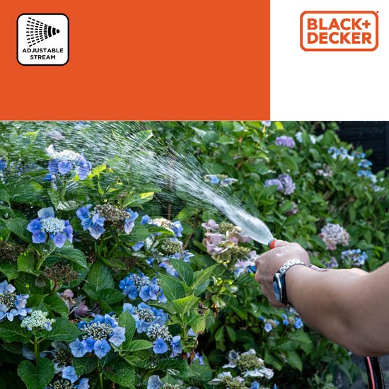 BLACK+DECKER Buse réglable - Pistolet d'arrosage pour tuyau d'arrosage - Débit d'eau réglable - 12 x 3.5 x 3.5 CM - Orange/Noir