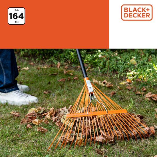 Râteau de Jardin - BLACK+DECKER - Râteau à Feuilles avec Poignée Confortable - 164 x 60 x 3 CM - Orange/Noir