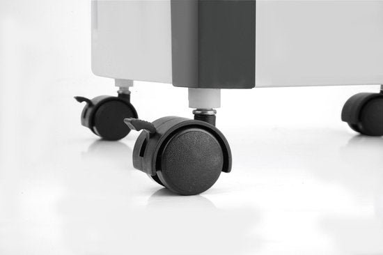 Vous pouvez régler ce rafraîchisseur d'air sur 3 vitesses d'air. Il est compact et, grâce à ses roues et à sa grande poignée, facile à déplacer. Il a une capacité de 5 litres et comme les réservoirs d'eau amovibles sont transparents, vous pouvez voir exactement quand vous devez les remplir. Plus l'eau est froide, plus l'air est frais. C'est pourquoi vous pouvez également placer les blocs réfrigérants fournis dans les réservoirs. Une poignée sur le dessus et les 4 roues sur le dessous permettent de déplacer facilement le dispositif de refroidissement.