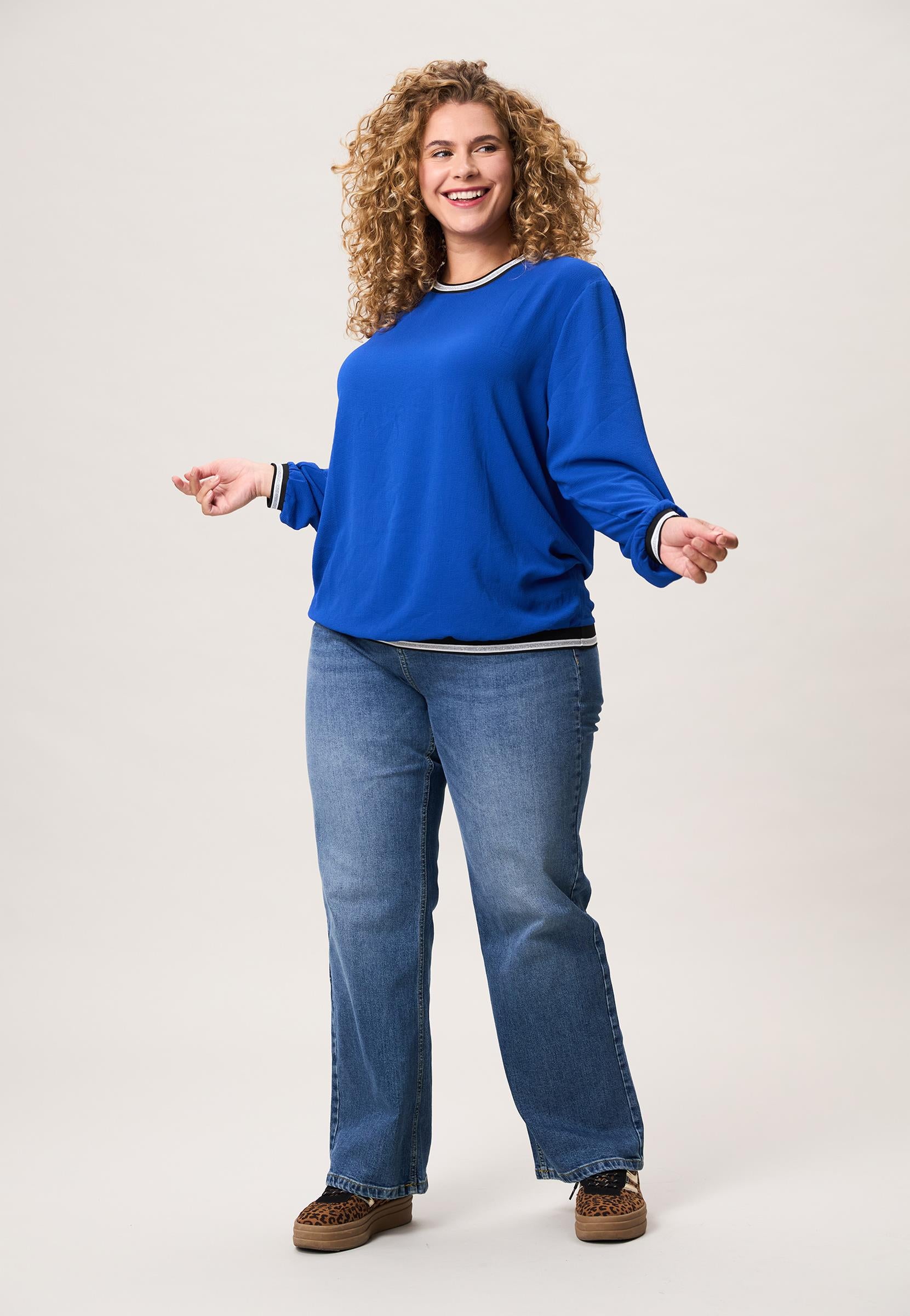 Romy Blouse PL - Bleu cobalt - Taille 48 - Top confortable avec détails sportifs