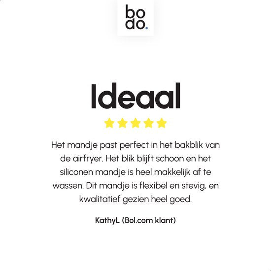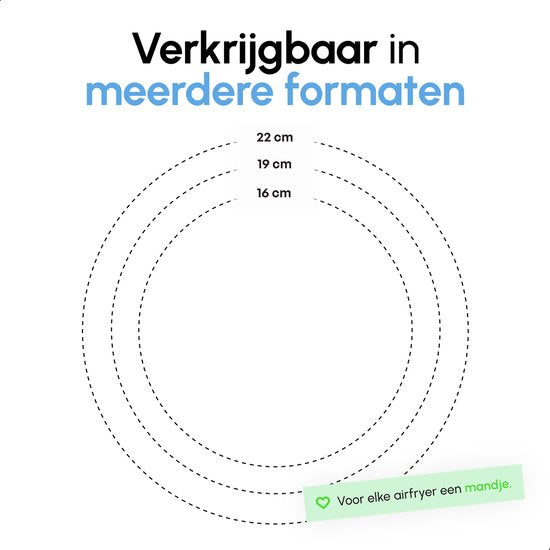 Vous n'aurez plus jamais besoin d'acheter du papier sulfurisé ou des plateaux jetables!La corbeille en silicone BODO est un accessoire indispensable pour tout utilisateur de friteuse. Notez que vous devez d'abord mesurer votre airfryer. Nous vous recommandons de laisser un petit espace entre le bord de votre friteuse et notre panier en silicone. Le panier de 19 cm est trop petit ? Nous vous recommandons alors le 22 cm.