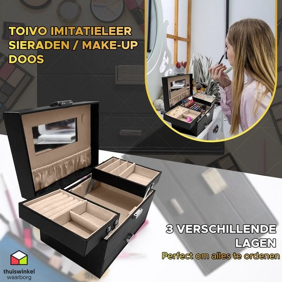 Vous en avez assez de perdre vos bijoux à chaque fois ? Vous souhaitez ranger toutes vos bagues, bracelets, boucles d'oreilles et même votre maquillage en un seul endroit et disposer en même temps d'une trousse de voyage pratique ? Vous appréciez la qualité de l'assemblage européen ? Alors la boîte à bijoux TOIVO est parfaite pour vous !