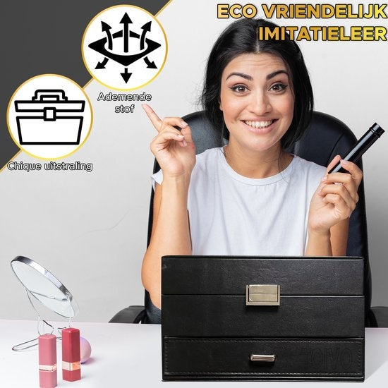La boîte à bijoux TOIVO peut être utilisée de manière multifonctionnelle comme boîte à bijoux et boîte de rangement pour le maquillage. Créez un aperçu et trouvez l'assecoire dont vous avez besoin en un rien de temps ! La boîte à bijoux TOIVO est également conçue dans le respect de l'environnement et utilise du similicuir. Nous pouvons donc dire avec fierté qu'avec cet achat, vous faites votre part pour lutter contre l'industrie difficile du cuir.