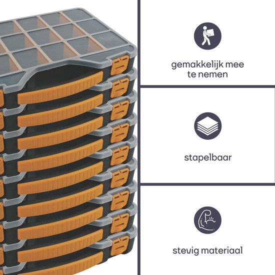 Cette boîte d'assortiment vous permet d'avoir toujours tous vos matériaux à portée de main. Les compartiments de rangement sont idéaux pour organiser diverses petites pièces et accessoires, tels que des clous, des écrous, des vis, des outils de bricolage, des hameçons, etc. Grâce au couvercle transparent, le contenu est toujours bien visible.