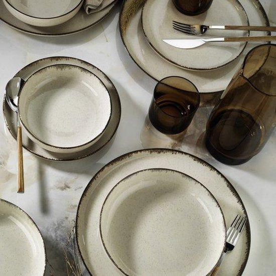 Vaisselle super cool et robuste de la marque Kitchen Trend. Cette vaisselle est fabriquée en faïence de haute qualité, de sorte que la vaisselle ne se boursoufle pas autant. Tous les articles sont faits à la main, ce qui les rend uniques ! Avec Kitchen Trend, vous donnerez la touche finale à votre table à manger. Taille : 15 cm.