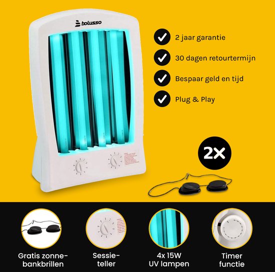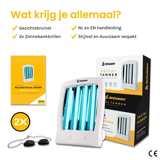 Bolusso Bronzage du visage - Bronzage du visage avec 2 lunettes de bronzage - Pour le visage et le décolleté - Solarium