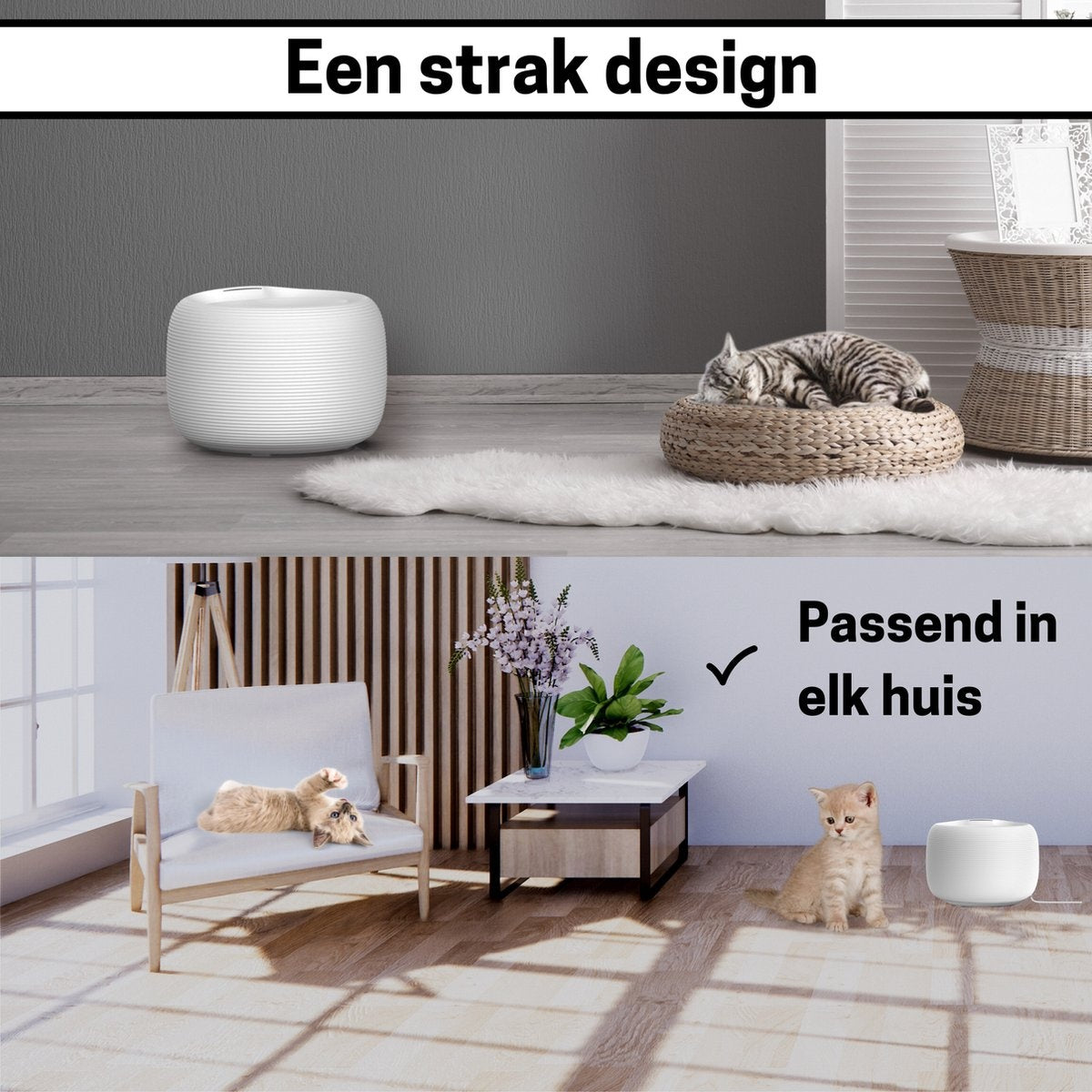 Comme les chats sont souvent nourris avec des aliments secs, ils absorbent moins de liquide. Ils doivent donc compenser ce manque par d'autres moyens. Or, les chats sont naturellement moins enclins à boire de l'eau. L'eau courante de la fontaine pour chats BOME incite votre animal à boire davantage. De plus, la fontaine veille à ce que l'eau soit riche en oxygène et les filtres maintiennent l'eau propre plus longtemps. Ainsi, vous vous souciez moins de votre animal et l'abreuvoir doit être changé moins souvent. C'est aussi un peu plus pratique pour le propriétaire :) De plus, la fontaine BOME est très belle dans l'intérieur et assure une bonne humidité dans la maison.