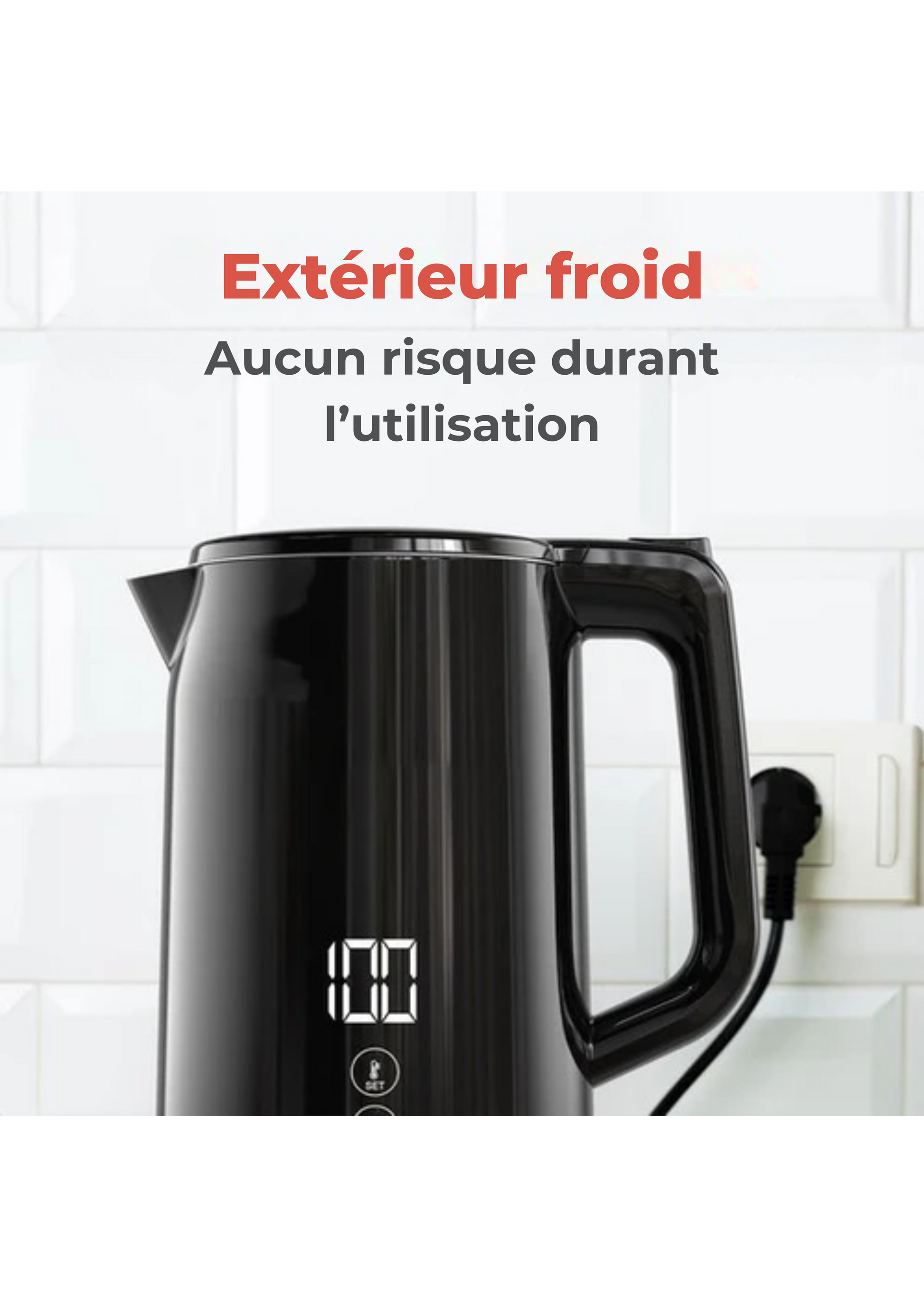 Grâce à la conception froide de cette bouilloire, vous n'avez plus à vous soucier des surfaces chaudes. La conception à double paroi signifie que seul l'intérieur en acier inoxydable reste chaud, de sorte que vous pouvez vous sentir libre de toucher la bouilloire pendant que vous l'utilisez. Même pendant et après l'ébullition de l'eau, l'extérieur reste suffisamment froid pour être touché. Cette caractéristique est idéale pour les familles avec enfants ou dans une cuisine animée où la sécurité est primordiale.
