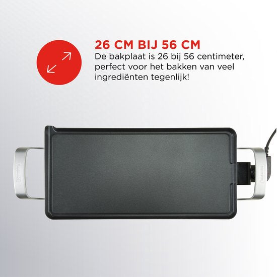 - Surface de cuisson de 26 x 56 cm avec double revêtement antiadhésif