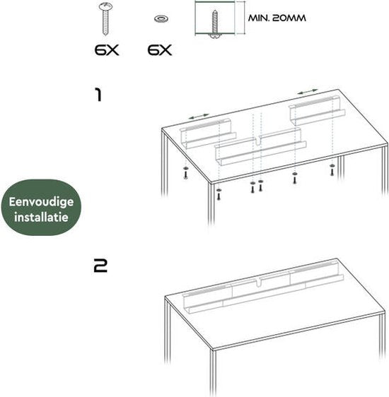 - Épaisseur minimale du plateau du bureau : 20 mm