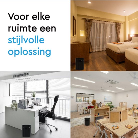 Non seulement parfaite pour le papier, elle convient également comme poubelle pour divers types de déchets. Pensez aux emballages, aux petites boîtes en carton ou à d'autres déchets.La poubelle légère. En plaçant plusieurs poubelles dans différentes pièces - par exemple dans la cuisine, sur le lieu de travail et dans la chambre à coucher - vous créez un aspect uniforme et organisé dans votre maison ou votre bureau.