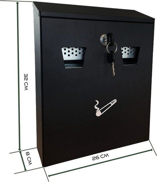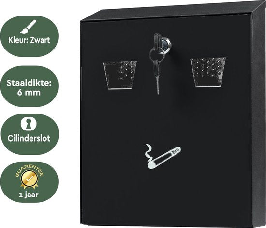 Le cendrier mural est fabriqué en acier galvanisé et revêtu par poudre. Cela garantit que le cendrier peut résister à diverses conditions météorologiques.Solide et durable.