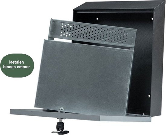 Le cendrier s'ouvre à l'avant et se verrouille à l'aide d'une serrure cylindrique. Il est facile d'ouvrir le cendrier, de le vider, de retirer le seau intérieur en métal et de le secouer pour le vider. Le design permet de garder les mégots de cigarettes au sec à tout moment et garantit une entrée soignée.
