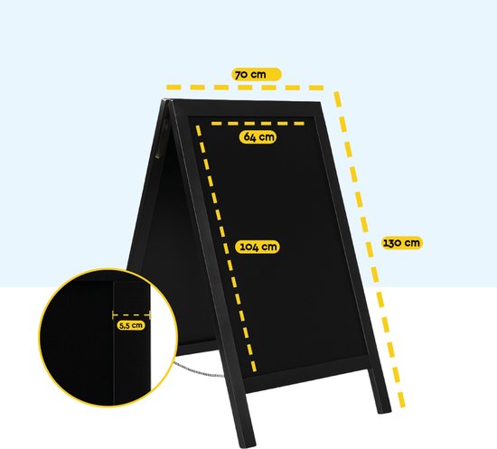 BRASQ Chalkboard Black - 70x130 CM - Tableau noir - Enseigne publicitaire - Enseigne de trottoir - Double face - pour l'intérieur et l'extérieur - Hospitality