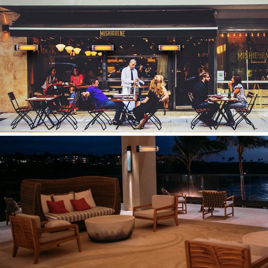 Grâce à sa construction IP34 splashproof, ce chauffage de terrasse résiste à l'humidité et aux averses légères. Il est donc parfait pour une utilisation extérieure de longue durée, quelles que soient les conditions météorologiques. Avec la certification CE, vous disposez également d'un produit qui garantit sécurité et durabilité.
