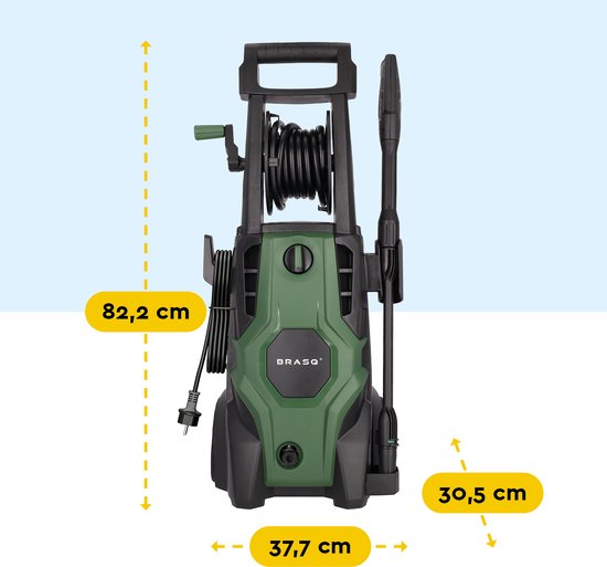 Le solide Moteur de brosse en carbone, les pièces certifiées CE et la construction pratique garantissent des performances durables. La valeur utilitaire élevée combinée à un prix compétitif font de ce nettoyeur haute pression un choix judicieux pour les acheteurs soucieux de la qualité. Les nettoyeurs haute pression de BRASQ rendent le nettoyage à nouveau amusant et facile.