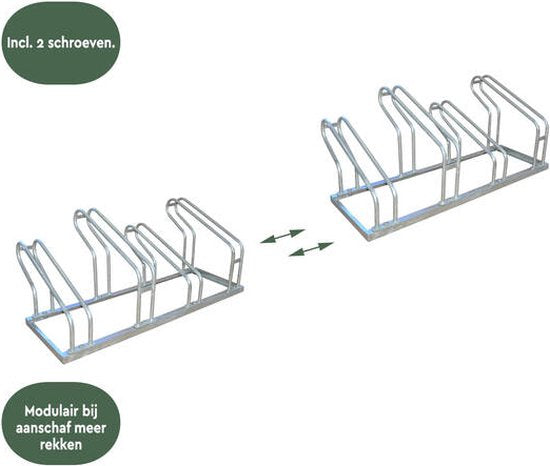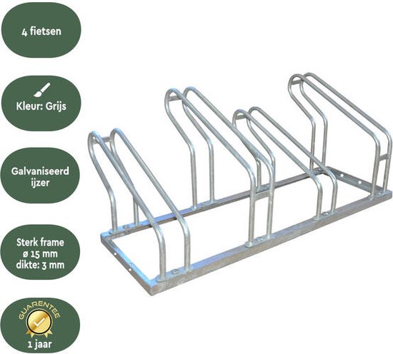 Le poids du support est de 9 kg et le bui...Les supports du support ont un diamètre de Ø16 par 1,5 mm. Ce porte-vélos est conçu pour les vélos (de ville) ayant une largeur de pneu maximale de 5,7 cm. Avec un espacement de 31 cm et le système innovant high-low entre chaque espace de stationnement, il y a suffisamment de distance pour que les vélos ne se gênent pas les uns les autres.