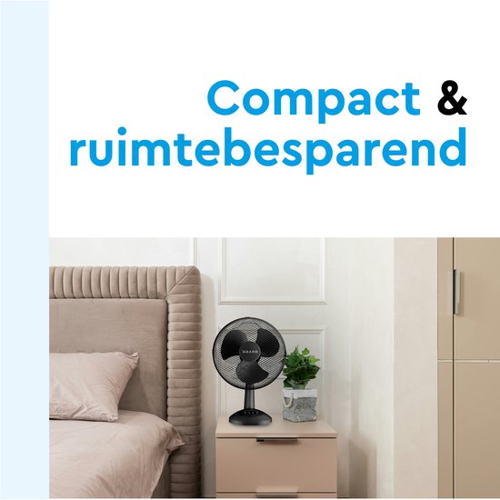 Grâce à la fonction d'oscillation, ce ventilateur de table assure une répartition homogène de l'air dans la pièce. De plus, vous pouvez facilement ajuster le flux d'air en tournant la tête du ventilateur.Ajustez. En plus de rafraîchir, ce mini ventilateur est parfait pour des usages pratiques tels que l'accélération du séchage de la peinture ou le séchage d'un sol mouillé. Ce refroidisseur d'air polyvalent fait bien plus que vous ne le pensez!