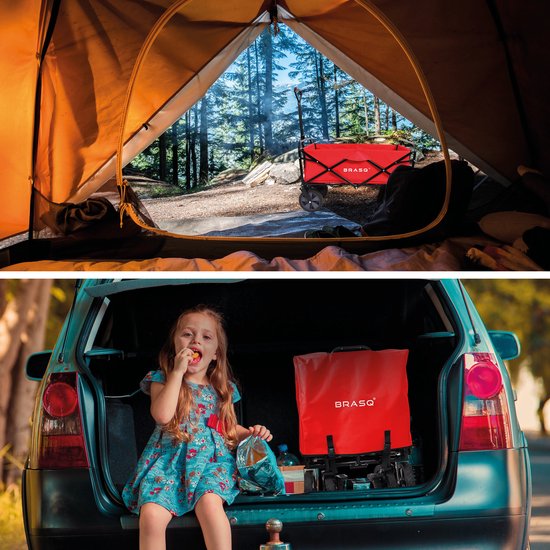 BRASQ Chariot pliable - 100 litres - Capacité 80 KG - Roues pivotantes avec frein - 90x51x100 CM - Poignée réglable - Chariot pliable - Compact - Rouge