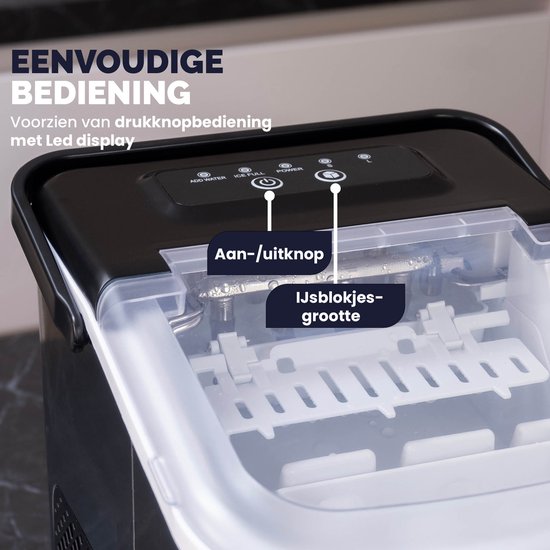 L'appareil est non seulement pratique, mais aussi respectueux de l'environnement.ijk. La machine à glaçons s'éteint automatiquement après utilisation, ce qui permet d'éviter toute consommation d'énergie inutile. Vous contribuez également à la réduction des déchets plastiques en n'ayant plus à acheter des glaçons dans des sacs en plastique.