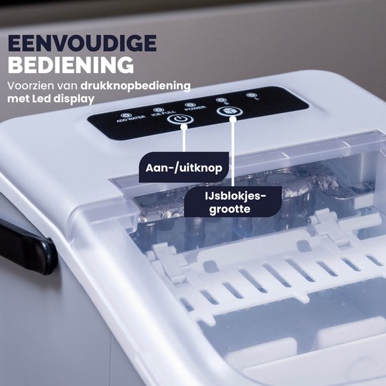 Cette machine est non seulement pratique, mais aussi écologique.ijk. Cette machine à glaçons s'éteint automatiquement après utilisation, ce qui permet d'éviter le gaspillage d'énergie. En outre, vous contribuerez à la réduction des déchets plastiques en n'utilisant pas de glaçons dans des sacs en plastique.